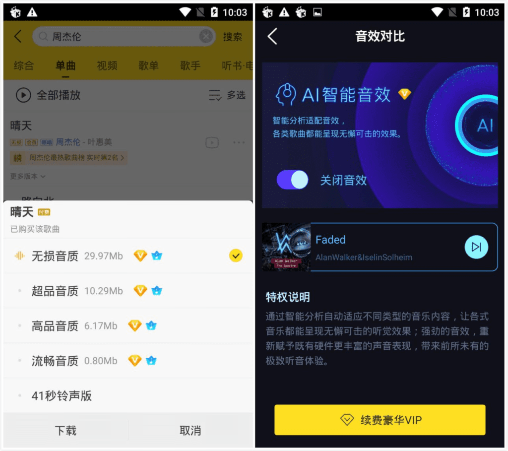 – 下载歌曲自动豪华VIP极速下载加速、一键HiFi、AI智能音效(免登陆)
